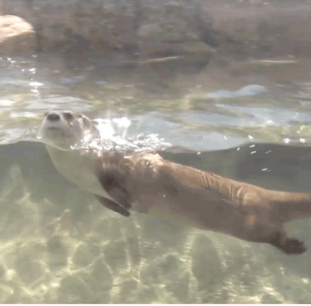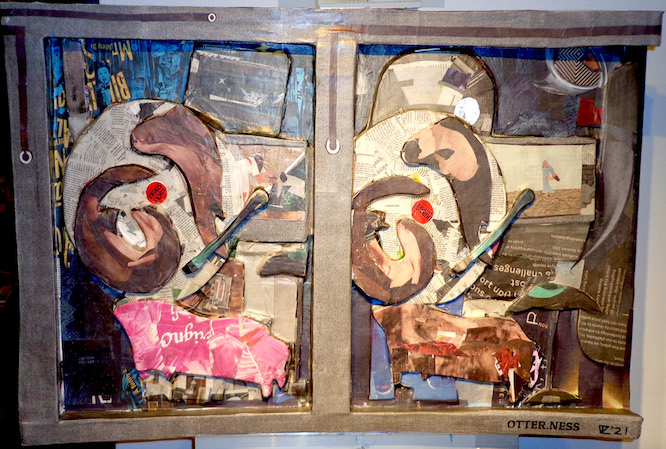 , paper, paste, cardboard, 38 X 24" (2021). (below) Ottercam is a popular attraction at the Monterey Bay Aquarium.