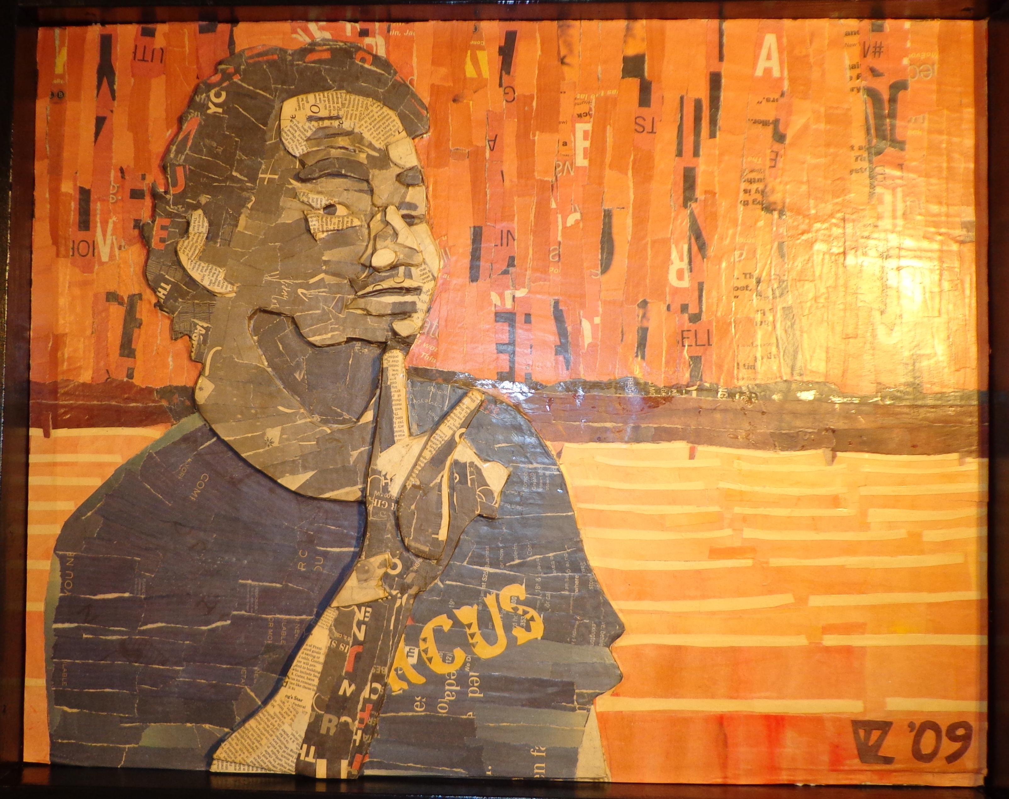 Choose a silhouette sans background for a sculptural portrait that only collage-relief can achieve.