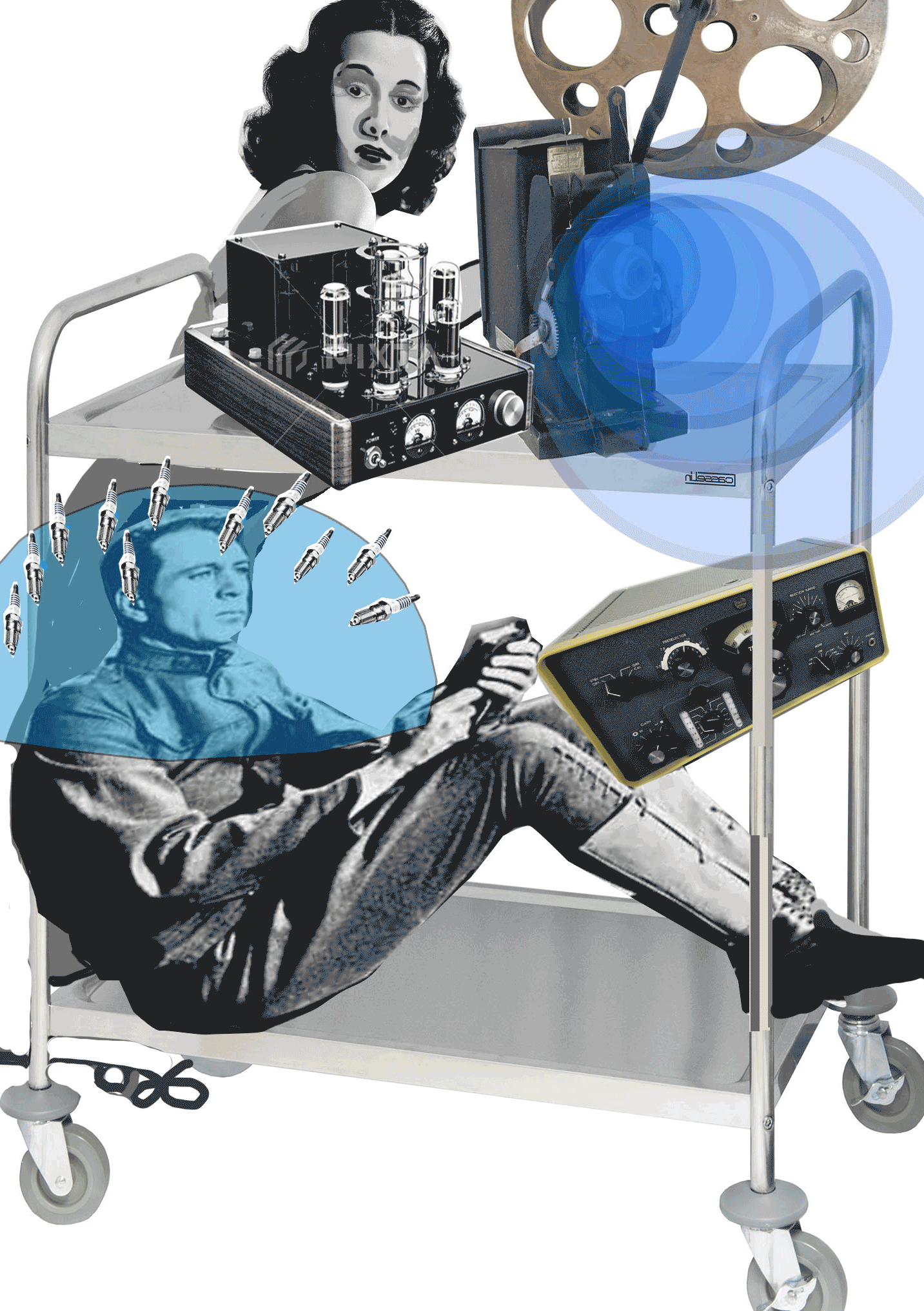 Two scientists ride to the rescue on a commandeered service trolley!